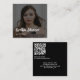 Elegant minimalist trendy professional photo square business card with your own automatically generated QR CODE, a black transparent overlay, and a chic contemporary script. ++++++++++++ Easy to personalise with your code, details and photo. +++++++++++ Suitable for an artist, actor, model, dancer, actress, photographer, wedding planner, hair stylist, makeup artist, fashion designer, graduate.