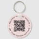 A simple custom blush pink QR code keychain template in a modern minimalist style which can be easily updated with your QR code, business name or website and custom text, eg. scan me to... #QRcode #keychain #business