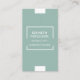 This clean, simple verticle-style business card is set up for any consultant, small business owner or any business professional. This pretty card features space for all your contact information and a QR code on the back side to input your website URL for a modern touch. Soft light green and white squares are the design elements with a combination of complementary classic serif and sans serif fonts. Use the personalisation templates to easily customise all your information, and add or delete text as necessary.