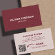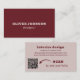 Modern simple trendy unique retro bold typography dark red burgundy and light pink business card with scannable QR code. Suitable for a professional interior or graphic designer, stylist, photographer, decorator, fashion store, hair stylist, lifestyle blogger, or social media influencer.