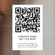 A simple custom white QR code vinyl window cling decal sign template in a modern minimalist style which can be easily updated with your QR code and custom text.