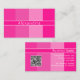 This is a modern, stylish, personalised business design. This chic, simple design is in trending hot pink, pink and white. It has space for you to add your name (or Business name) on the front. On the back you can add your business name and business information and QR code. The template design is set up for you to simply add your business information and contact details and is ideal for a professional, minimal, and elegant business card to give to your customers and business contacts. To personalise, simply add your name / business name and business information by using the personalise this text box. To create your custom business QR code, simply add your URL using the personalise this text box, and your scannable QR code will automatically be created on the back of the business card. To change the colour or font, check out the design editing tool. For help with personalisation, matching products, or for a custom design contact me via zazzle chat or email: ursuladawnmoon@gmail.com