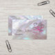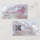 This elegant luxury business card features a transparent pink flower on an iridescent mother-of-pear design and an elegant handwritten script. On the reverse side is a scannable qr code and a custom template for name, address and socials. This professional glam business card is perfect for salon, make up artists, jewellery and more.