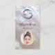 This elegant luxury business card features an iridescent mother-of-pear design and an elegant handwritten script. On the front side is a custom logo and a photo. On the reverse side is a scannable qr code and a custom template for name, address and socials. This professional glam business card is perfect for salon, make up artists, jewellery and more.