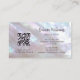 This elegant luxury business card features an iridescent mother-of-pear design and a big handwritten calligraphy for your name. On the reverse side is a scannable qr code and a custom template for name, address and socials. This professional glam business card is perfect for salon, make up artists, beauty, jewellery and more.