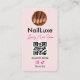 Promote your nail business with this QR code nail technician blush pink photo business card. The soft blush pink color creates a stylish, feminine look while the photo layout allows you to showcase your work or brand image. An integrated QR code lets clients easily access booking links, social media, or your online portfolio. Clean typography keeps contact details clear, making this card ideal for nail technicians, nail artists, and salon professionals seeking a modern, print-ready design with digital convenience.