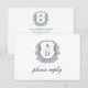 QR Code Navy Blue Crest Monogram Wedding RSVP Card