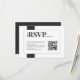 This reply card is easily customisable with your online RSVP information and your own QR Code to send your guests directly to your wedding website on the front of the card, and the bride and groom's white monograms on the solid dark grey reverse.