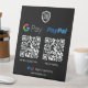 A simple custom Black business scan to pay by Google Pay or Paypal QR code pedestal sign in a modern minimalist style.