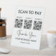 Simple table top pedestal sign for your business with 3 or your QR codes linked to payment apps for customers to scan for contactless mobile payments.