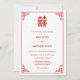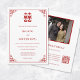 This elegant Chinese wedding invitation features a red double happiness symbol and a red Chinese fram. Bride and groom names in an elegant modern font. Chinese wedding invitation or tea ceremony invitation. With a scannable qr code and a photo at the backside.