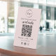 The minimalist white design effortlessly complements any setting, conveying a sense of contemporary style and technological savvy. With the clear directive, "Scan To Follow Us on Social Network," it encourages patrons to engage with your brand online.