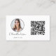 Professional Elegant and Modern Minimalist Photo Black White QR Code Business Card that allows you to include headshot photo or picture, Name, Job Title, Email, Phone Number, Website and Social Media contact information.