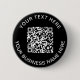 Simple promotional black button for your business or organisation. Add your QR code or logo and two lines of customised white text, such as your company name, slogan, thank you, or leave blank.