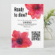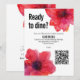 The Flat double sided menu card with QR code from the "Anemone Dreamscape Wedding Collection" offers a charming and functional addition to your wedding reception setup. On the front of the sign, against a clean white background, the caption "Ready to dine?" invites guests to join in the dining experience. Below the caption, there is space for customisable text, where you can add a message or details about the dining arrangements.