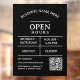 Modern, Stylish QR Code Restaurant Salon Business Open Hours Door Window Cling. This is for glass surface.
