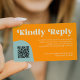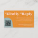 Abstract retro vintage groovy 70s style boho unique budget wedding scanning QR code wedding website response enclosure card with "kindly reply" bold typography in a vibrant trendy modern dusty blue, light pink and orange chic summer color palette. +++++++ Please note that all the colors are changeable. +++++++++ Bigger sizes available. ++++++++++++ Matching invitation and stationery are available in the collection.