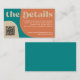 Abstract shapes retro vintage 70s style boho unique budget wedding scanning QR code wedding website enclosure card with "the details" bold typography in a vibrant trendy modern teal, beige tan and orange chic color palette. +++++++ Please note that all the colors are changeable. +++++++++ Bigger sizes available. ++++++++++++ Matching invitation and stationery are available in the collection.