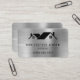 Help your roofing business stand out from the crowd with this bold, eye-catching black and silver business card featuring rounded corners. A silver faux brushed metal image provides the background for a black roof logo and black text to highlight your business name, contact information and other details. A QR code on the back takes customers and clients to your website.