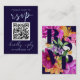 QR Code RSVP Wedding Dark Blue Colourful Floral Enclosure Card