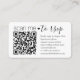 Share one of your engagement or wedding photos and simplify RSVP responses with chic modern QR Code enclosure cards. Picture and all text are simple to customise, including wording that reads "scan me to rsvp". To make your own QR code using the generator, simply type the website URL into the template. By scanning the card with their phones, guests are sent directly to the wedding website to reply to the invitation. An online rsvp process reduces the chance that cards will be lost in the mail. It's also more versatile, in that you can ask for more detailed information, such as meal choices, food allergies, and song requests. All response information can be personalised or deleted. The black and white design features a cute heart, modern minimalist typography, handwritten script calligraphy and 1 picture of your choice. This card is a stylish way of asking wedding guests to kindly reply to your upcoming special day celebration.