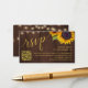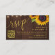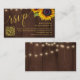 Rustic elegant sunflowers wedding invitation budget affordable MINI SIZE online RSVP response enclosure card with scanning QR code (automatically generated) on a brown barn wood background with strings of twinkle lights. ++++++++++ See the collection for matching stationery.