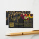 Rustic elegant sunflowers and roses wedding invitation MINI SIZE online RSVP enclosure card with scanning QR code (automatically generated with your link) on a dark brown barn wood background with strings of twinkle lights.