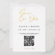 Less hassle, no missing mail when you invite your guests online with a QR code that sends them directly to your wedding website for additional details. The design features a minimalist, simple black and white creative with a modern very elegant calligraphy Save Our Date script in real gold foil. Easily replace with your own QR code and your personal information of choice. There are QR code generators online if needed. Simply place the keywords "QR code creator" into Google search and lots of free options will appear for you to choose from.