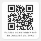 Square stickers with your QR code and custom text "scan and RSVP by" and your date. Change fonts and colors, move and resize elements with the design tool. Follow us on Facebook: @businessstationery for more products, news, sales and more.