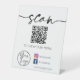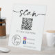 Modern calligraphy menu sign. Customise this sign with your QR code, business logo and social media info. Click “customise further” to change the background colour to match your business’ colour scheme.