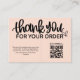Express your gratitude with our blush pink QR Code "Thank You for Your Purchase" Card Package Insert. Your customer scan the QR code to reveal a heartfelt message, exclusive offers, or a personalised thank-you note, adding a special touch to your customer's shopping experience. Show appreciation and foster loyalty with this innovative and thoughtful package insert.