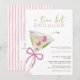 This “A Tini Bit Engaged” Bridal Shower Invitation sets a playful yet polished tone for celebrating the bride-to-be. Featuring a hand-painted martini glass illustration with soft pastel hues, a charming bow detail, and modern typography, this design is perfect for cocktail-themed, chic, or contemporary bridal showers. The striped backing adds a fresh, stylish contrast while keeping the overall look light and celebratory.