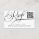 Simple trendy romantic calligraphy script budget affordable (MINI SIZE) black and white wedding online response RSVP enclosure card with a classy elegant look and your automatically generated QR CODE. A simple way to rsvp to your wedding invitation.