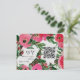 Watercolor inspired anemone design background. Black text and qr code on front over design. Black text over white background on back.