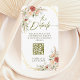 Effortlessly guide your guests with this elegant floral wedding QR code card, beautifully adorned with a romantic cascade of watercolor blooms. A modern gold geometric frame is lavishly entwined with hand-painted garden florals — including soft blush peonies, rust-hued roses, delicate ivory ranunculus, peach-toned blossoms, wildflowers, and fresh greenery. The rich floral arrangement adds warmth and charm, making this card a stunning addition to your wedding stationery suite.