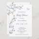 This cute baby shower invitation features blue cherry blossoms and butterflies on a white background. The lovely cherry blossoms printed on this boy baby shower invitation card signal the arrival of spring and are emblematic of a new arrival in the family. With a scannable qr code for your gift registry at the backside.