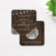 Rustic Farm Barnwood String Lights and Lace Wedding Invitation cards featuring a rustic wood background with twinkling strings of lights and vintage style lace in the bottom corners. TYour QR Code, paired with our modern, chic script typography, makes this the perfect response card for your rustic, chic affair or boho farmhouse wedding. Please contact us at cedarandstring@gmail.com if you need assistance with the design or matching products.