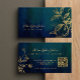 Navy blue teal and gold classy exclusive elegant business card with a golden botanical foliage branch, classic calligraphy script and your QR code automatically generated with your web URL address. ++++++++++++ Suitable for personal stylists specialists, luxe fashion and home interior designers, artists, painters, boutique owners, creative professionals, upholstery and curtain business, furniture and antique dealers, wedding events planner, salon managers, makeup artists, beauticians, beauty products distributors, estheticians or cosmetologists. +++++++++ Easy to personalise with your details!