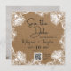 Our save the date card is a modern way to invite your guests to your special day. Each card features a beautiful script font on a lace printed rustic background, making them perfect for any occasion. Our personalised save the date wedding invitation can be customised with your own photo and text, making it a truly special keepsake for your guests to cherish. The first step to your dream day starts here. Order now and let's celebrate together!
