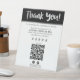 The words THANK YOU are made of faux SILVER SATIN FOIL which adds some extra pretty and Class to this workhorse of design with a REVIEW 5 sparkling SILVER GLITTER 5 STAR TABLE TOP TABLE TENT QR code PEDESTAL SIGN.
