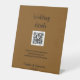 QR WEDDING WEBSITE add photoname date black white Pedestal Sign