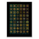 A digital quilt of one my kaleidoscopic dingbat fonts, Quadtiles One (dingbatcave.com). Dark teal background with gold dingbats...A collection of 54 icons in all. So digital, yet with ornate classical decadence.