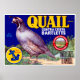 Vintage fruit crate label for Quail brand Contra Costa Bartlet pears from California.