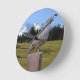The clock did not take as long to arrive as I thought it might and was extremely well packaged. I didn't do the measurements so I didn't realize it is a little smaller than the average clock but that does not matter (just make sure you check if that's important to you).It is really nifty! It seems very solid and well made not flimsy at all. It has been going well and has kept good time in its few weeks on my wall. Nice product. Gets noticed too! Nicer in real life than the picture but true to the picture