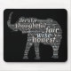 The mighty elephant is a model of leadership to be emulated. In addition to strength and size, the elephant is a highly intelligent and social being. This word cloud in elephant shape expresses some of the key characteristics that make a good organisational leader, such as decisive, thoughtful, wise, clear, fair and disciplined. Customise with your own names, titles or slogans or to change the background colour.
