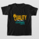The t-shirt feels and looks great quality, a good thick cotton. It will be a little big for my son, but that means he will be able to wear it and not out grow it too soon. The print was as described on the order when personalised. True size, shape and colour T-shirt- thanks.