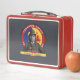 This is a standard metal lunchbox that appears to work just fine. We designed this box ourselves with an uploaded photo and custom text on the front and back. It looks absolutely beautiful except the front of the lunchbox is not centered like it shows in the photo. The print borders don't align with the inset flat part of the box where the preview photo online showed it perfectly centered in there. The back looks nice and centered though.