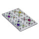 This digital artwork explores a vibrant interplay of geometry and color through a lattice of intersecting lines and diamond-shaped nodes. Each intersection pulses with energy, framed by textured strokes of deep purples, electric greens, fiery oranges, and cool blues. The pattern evokes both the precision of mathematical grids and the spontaneity of abstract expression, creating a visual rhythm that feels alive—almost vibrating with coded meaning. The overall composition feels like a map of data or emotion, viewed through a kaleidoscopic lens.