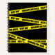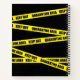 Fun black notebook printed with stripes of yellow Quarantine Area tape. Quarantine Area Keep Out yellow tape.