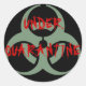 If you're starting to turn green and crave brains then chances are you are turning into one of the undead. Never fear, just stick one of these Zombie quarantine stickers to your forehead and everyone will know to stay clear until you've had your vaccination. This simple quarantine sign, in zombie green is cool and stylish and looks great against any background colour. Click the 'Customise it' Button to change the background colour.